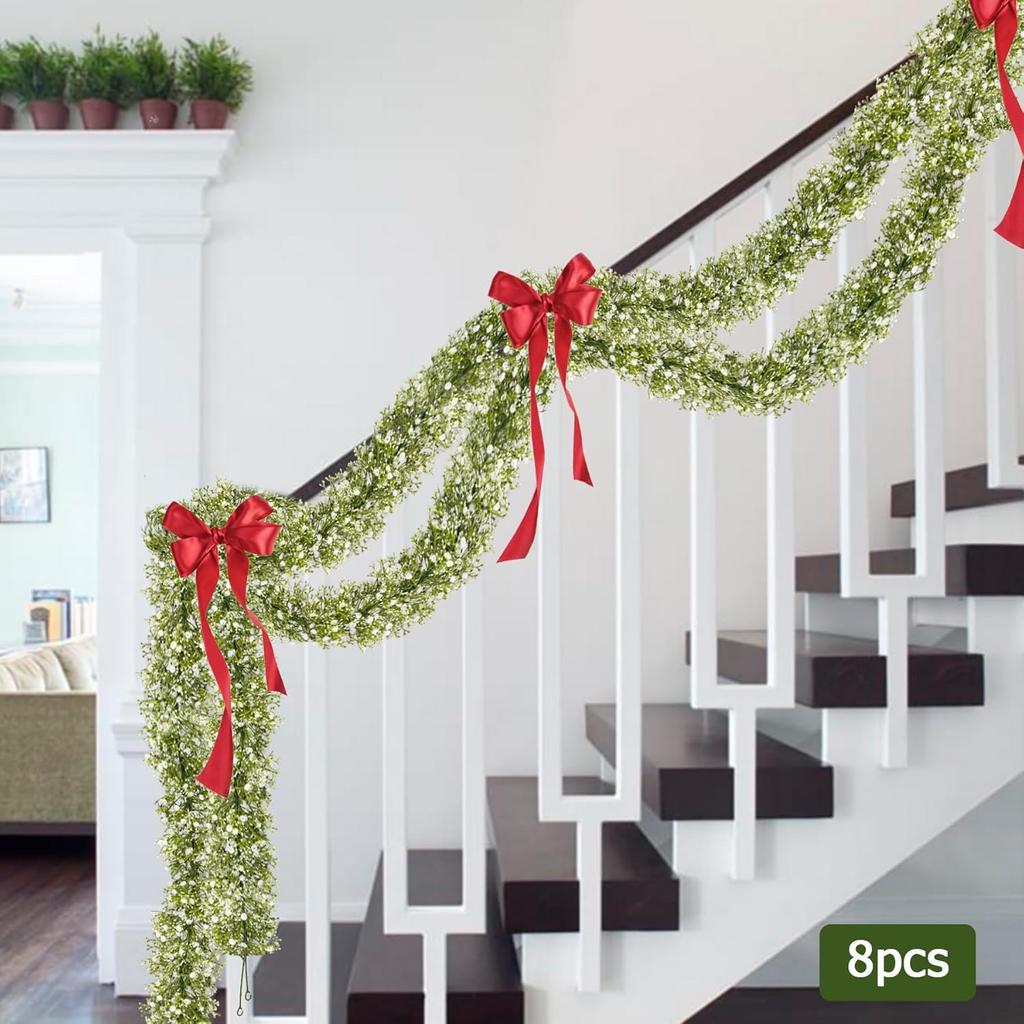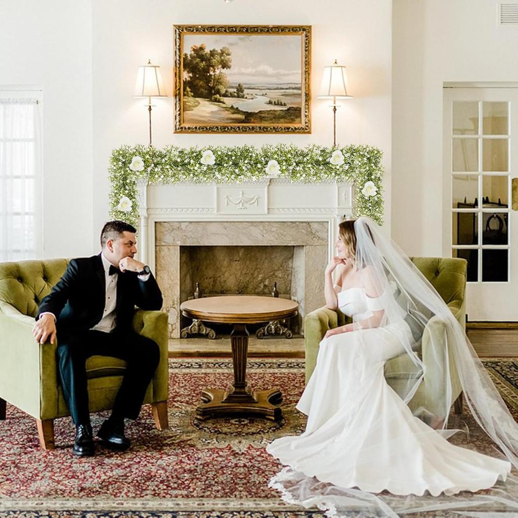 2 Pcs 5.8ft Artificial Baby Breath Flower Vines, Babys Breath Artificial Flowers Real Touch Faux Gypsophila Hanging Fake Baby's Breath Garlands for