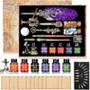 【QUILL PEN INK SET INCLUDED】: 1 Quill Pen, 1 Glass Dip Pen, 1 Wooden Dip Pen, 6 Bottled Ink (6 Colors: Black, Red, Orange, Purple, Blue, Green), 16 Letter Paper, 2 Envelope, 17 Stainless Steel Nibs of Different Sizes, 1 Engraving Pen Holder (Can hold ink and dip pens),1 Ink Cup, 2 Bottles of Fire Paint Wax Beads, 1 Seal Stamp(gear clock )pattern, 1White Wax, 1 Wax Melting Spoon, 1 Open Envelope Tool, 1 Exquisite Retro High-End Map Gift Box.