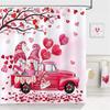 Likiyol Valentines Day Shower Curtain Sets with Rugs, Red Truck Gnome Valentines Bathroom Sets with Shower Curtain and Rugs, Buffalo Plaid Love Heart
