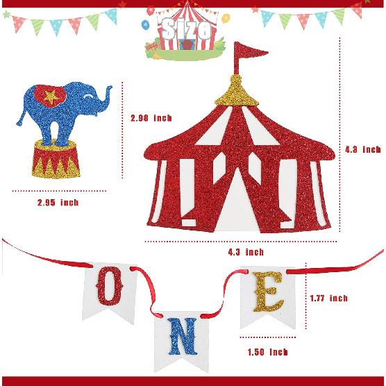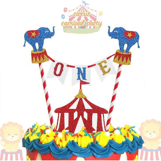 Circus Carnival Theme Cake Topper 1st Birthday Circus Theme Photo Booth Props Cake Smash Party Cake Decorations Supplies, Glitter