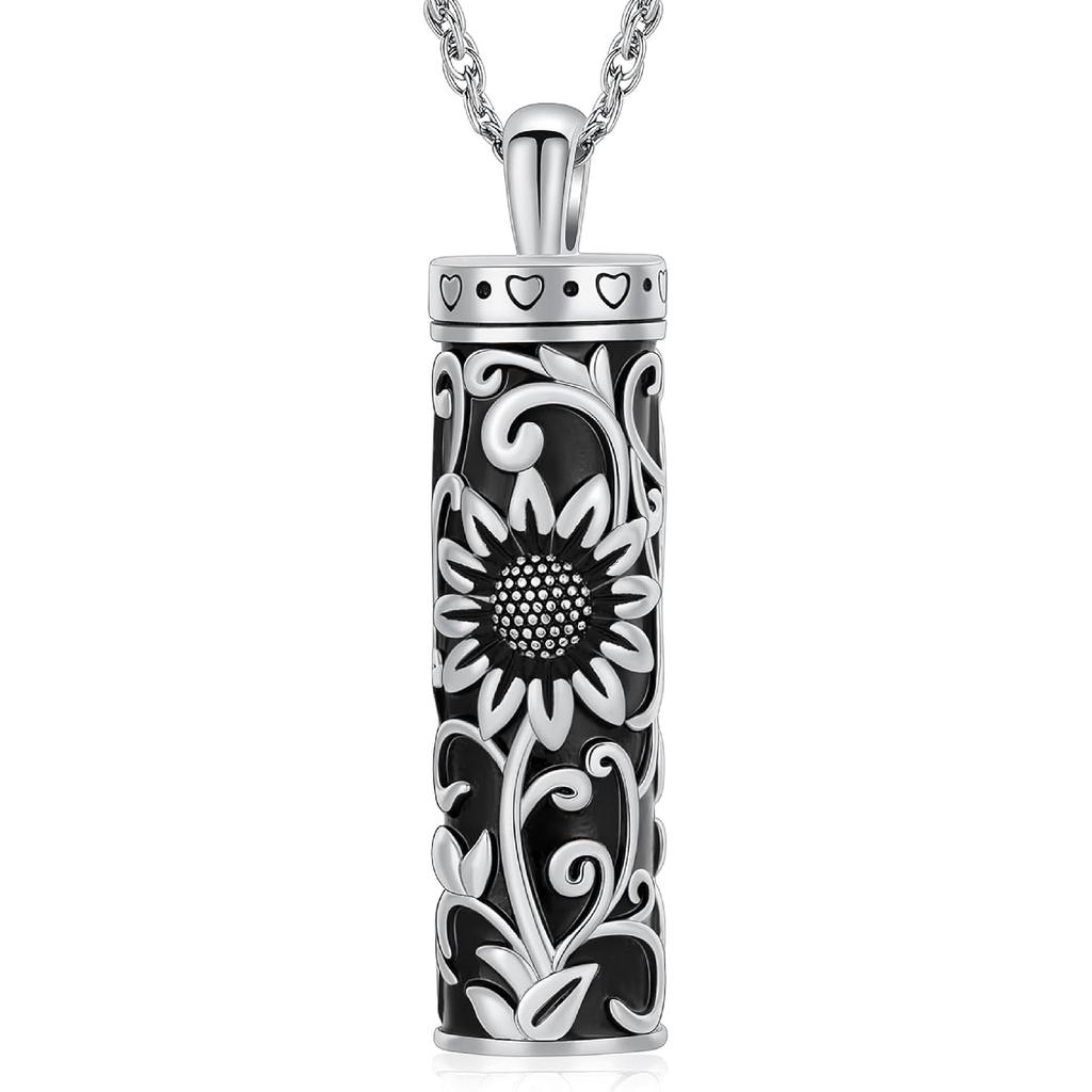 Шайво Ожерелье-урна в форме цилиндра для праха для женщин и мужчин Подсолнух Кремационное ювелирное изделие Флакон Памятный кулон для близкого человека