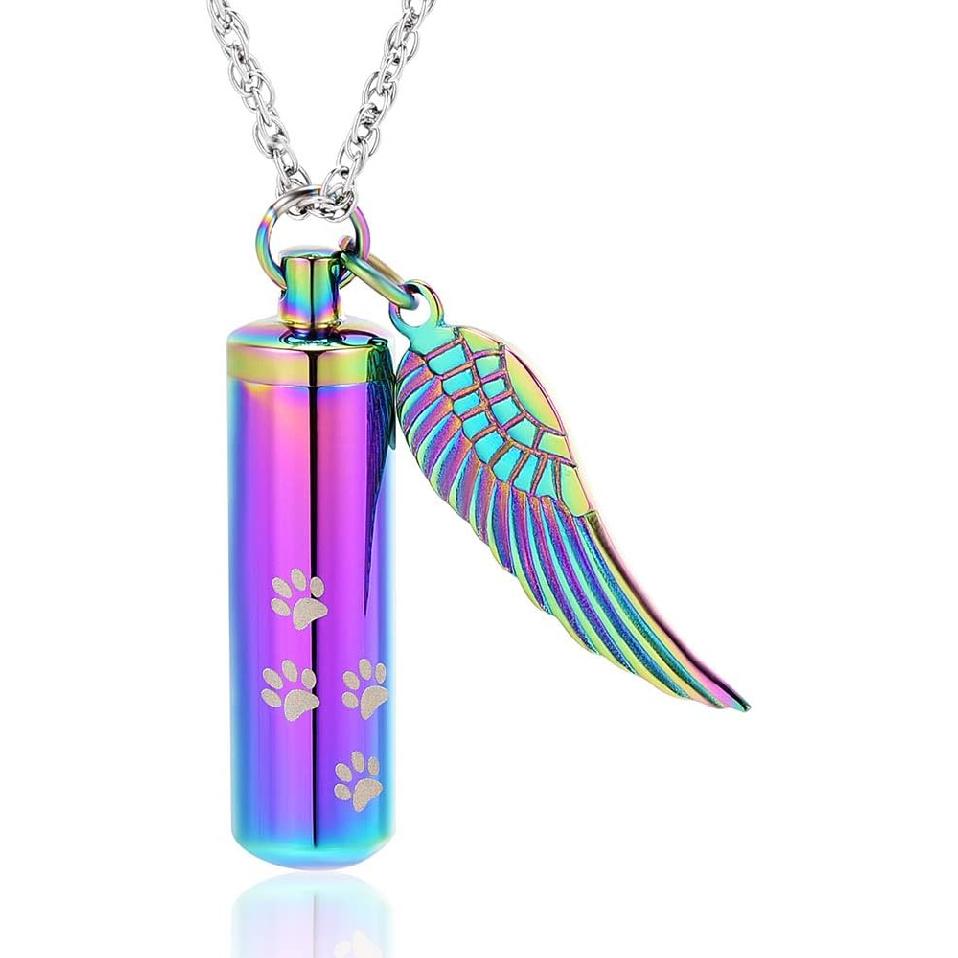 shajwo Cremation Jewelry Paw Print Urn Necklaces for Human Pet Ashes Cylinder Urn Pendant Keepsake Memorial Ash Locket Holder Necklace for Men Women