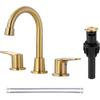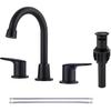 2 Handle 3 Holes Widespread Bathroom Faucet, Bathroom Sink Faucet with Copper Pop Up Drain, Black & Gold Lavatory Faucet Swivel Spout with Drain