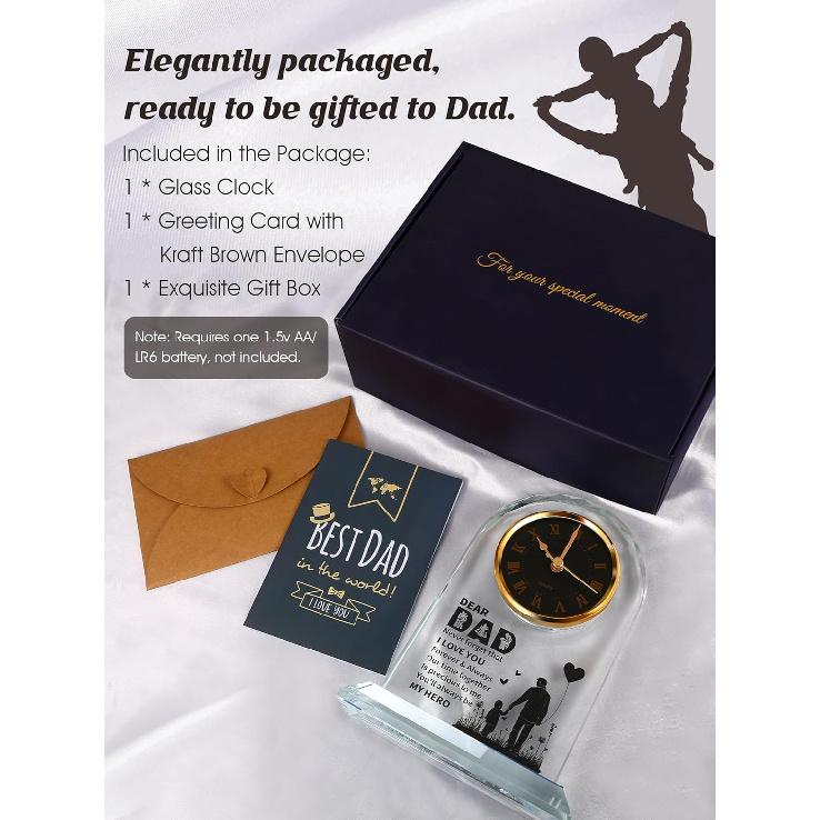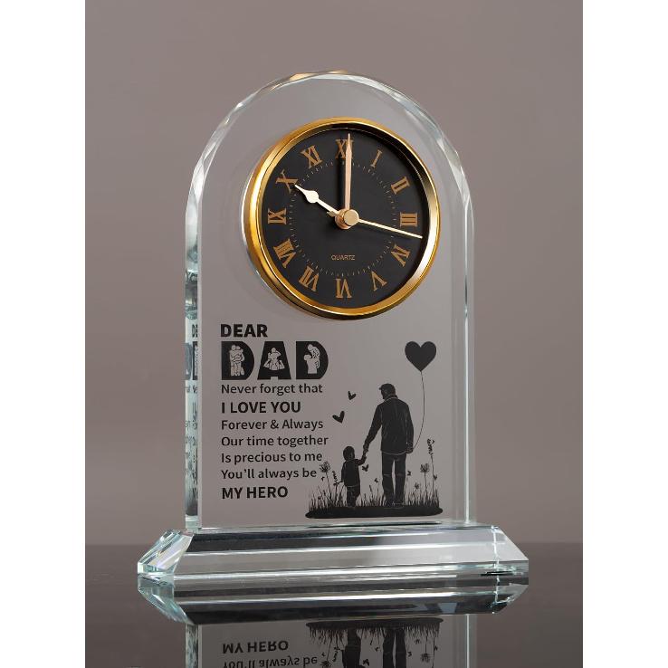 Папа Стеклянные часы Подарок от дочери или сына, Уникальный на день рождения, Рождество, Папа Подарки на День святого Валентина от дочери, Элегантные настольные часы с подставкой для пап, у которых есть