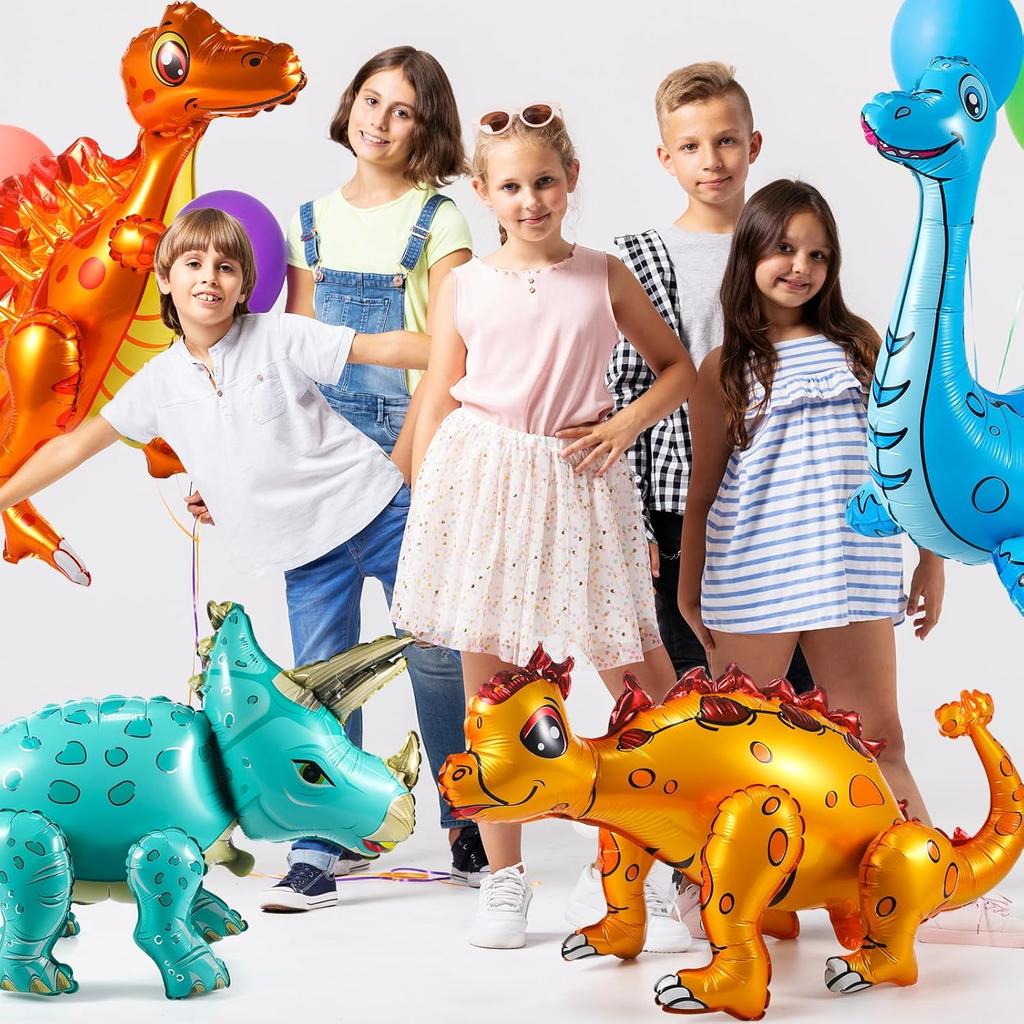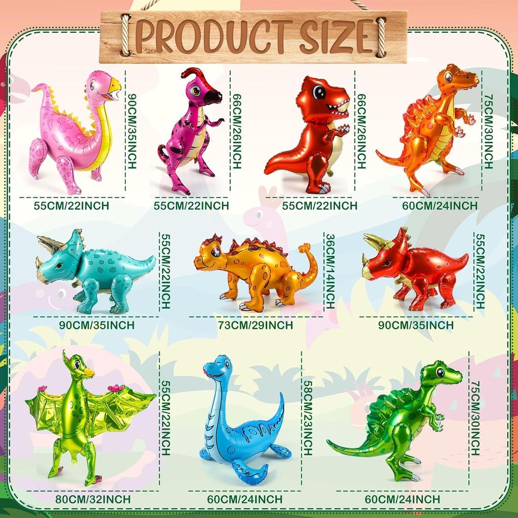 Подходит для любителей динозавров: Эти большие воздушные шары с динозаврами также могут создать радостную атмосферу для различных случаев, таких как дни рождения, свадьбы, вечеринки в стиле джунглей, выпускные или другие праздничные украшения, принося вам много веселья