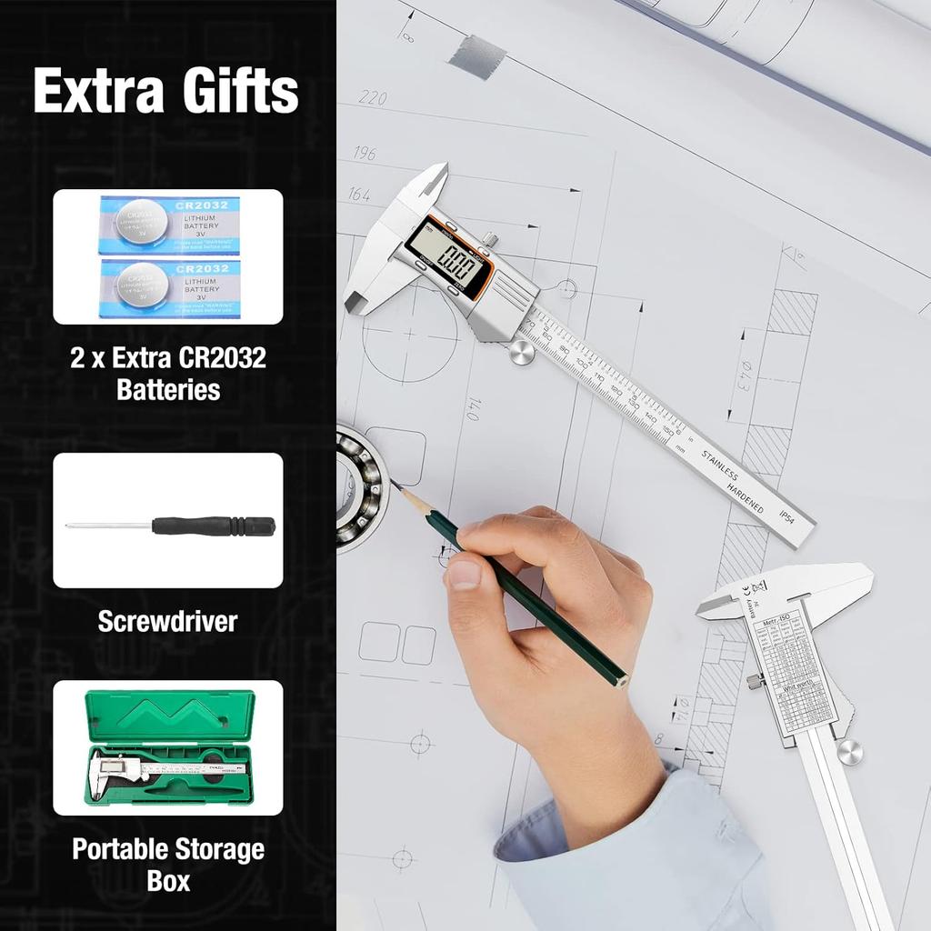 Digital Caliper 12 inch 300mm Micrometer Caliper All Stainless Steel Electronic Diameter Measuring Tool with Large LCD Screen for