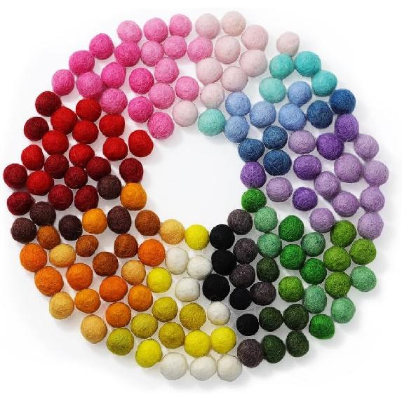 Шарики из шерсти войлока Помпоны 1 сантиметр - 0,4 дюйма, Ручная работа, Валяные, Смешанный цвет (Красный, Розовый, Синий, Серый, Черный, Белый,) Большая маленькая пуховка для валяния и