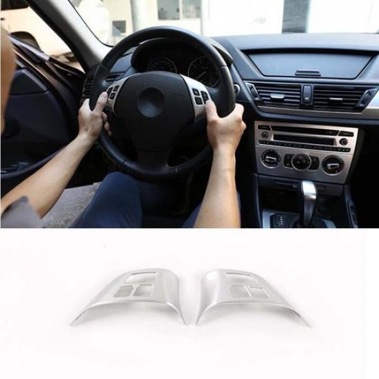 2PCS Silver Steering Wheel Button Cover Trim ABS For BMW 3-Series E90 2005-2012