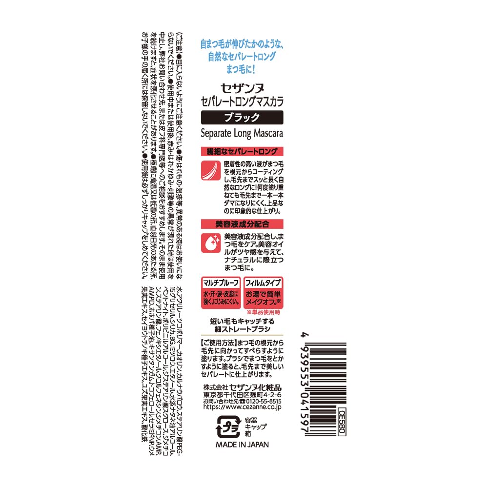 Cezanne Separate Long Separate Long Mascara, Black, 5.0g, Mascara, Multi-Proof