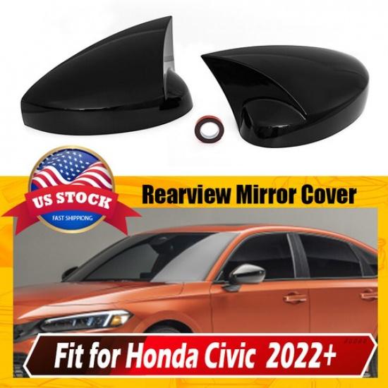Glossy Black For Honda 11th Civic 2022-2023 Rear View Side Mirror Cover Trim 2x