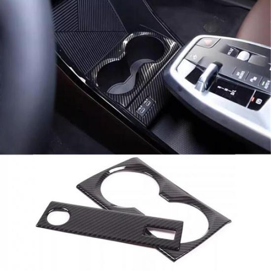 For BMW X1 2023-24 Carbon ABS Central Console Water Cup Holder Panel Cover Trim