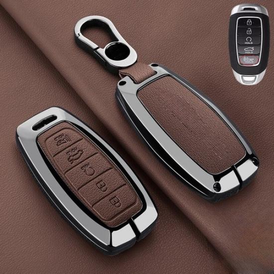 Чехол-накладка из цинкового сплава и кожи для пульта дистанционного управления автомобилем для Hyundai Palisade Elantra GT