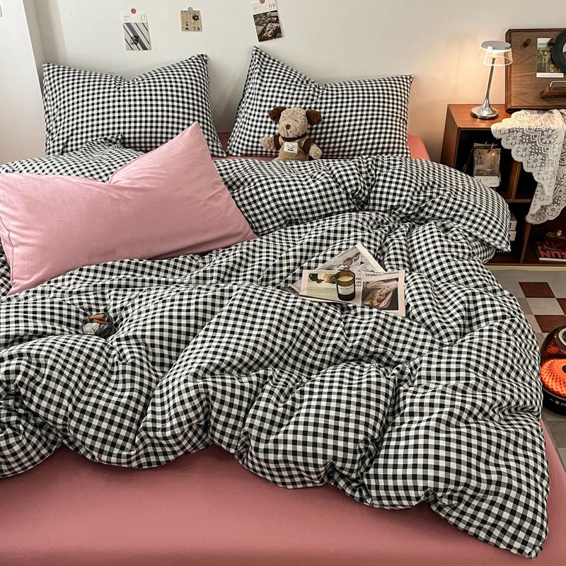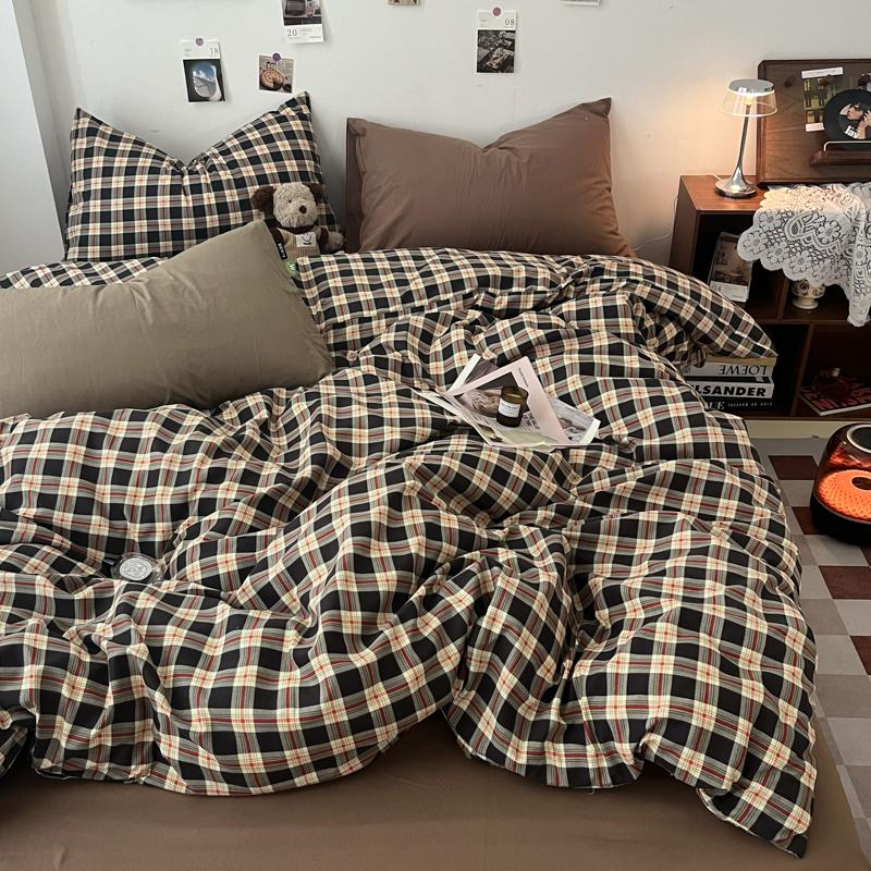 Vintage Double Sided Red Plaid Bedding Set Skin-Friendly Soft Duvet Cover Set with Bed Sheet and Pillowcases for Single Double