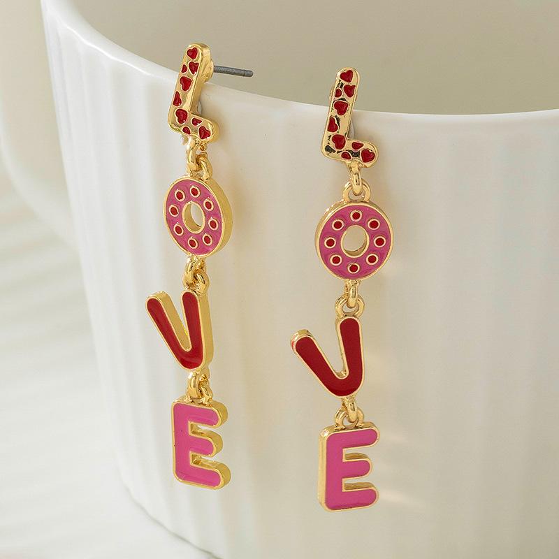 Пара персонализированных сережек-подвесок с буквой 'love' розового цвета, Подарок-аксессуар для вечеринки ко Дню святого Валентина для девушки