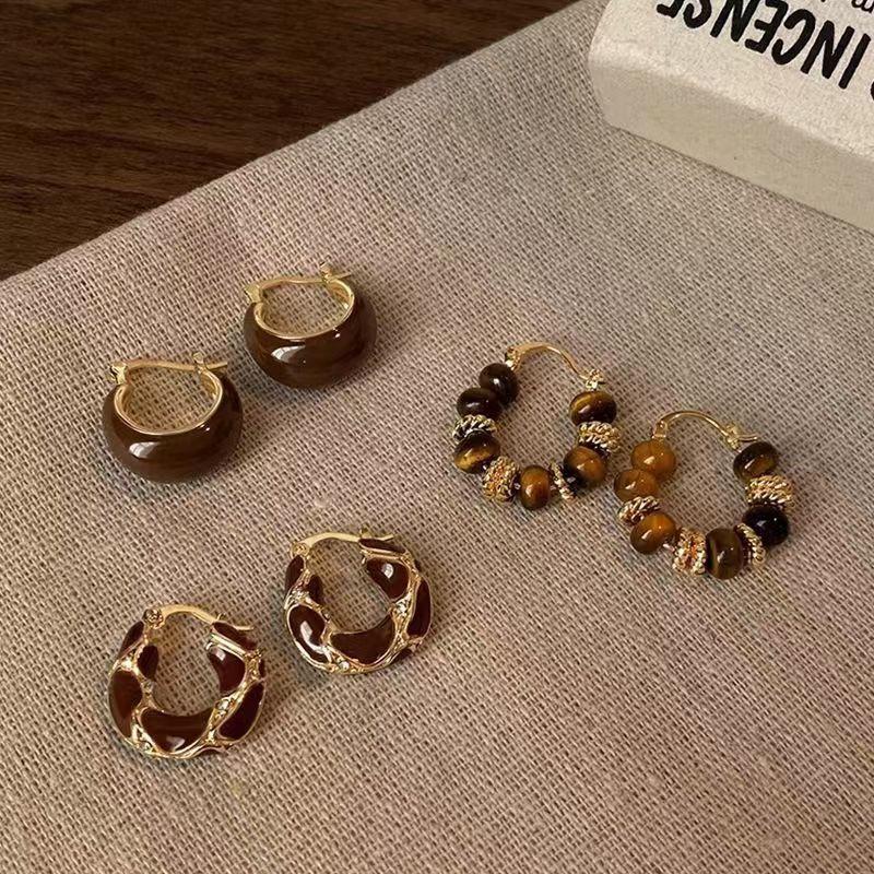 Винтажные коричневые серьги U-образной формы для женщин, девушек, простые серьги-кольца с круглыми бусинами цвета кофе, темпераментные свадебные украшения для невесты