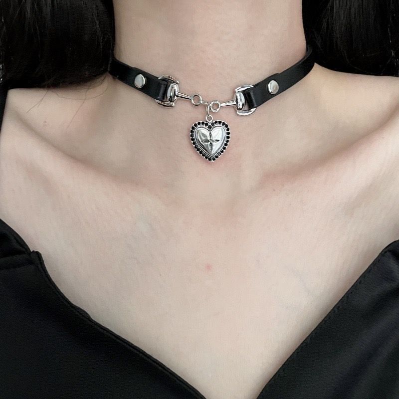 Gothic Punk Style Cross Heart Pendant Leather Rope Necklace, Women's Y2k Temperament Jewelry Accessories Gift