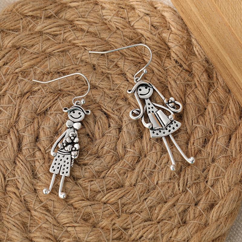 Винтажные серьги-подвески из металла серебристого цвета с геометрической резьбой и узором маленького человечка для женщин, ювелирные изделия