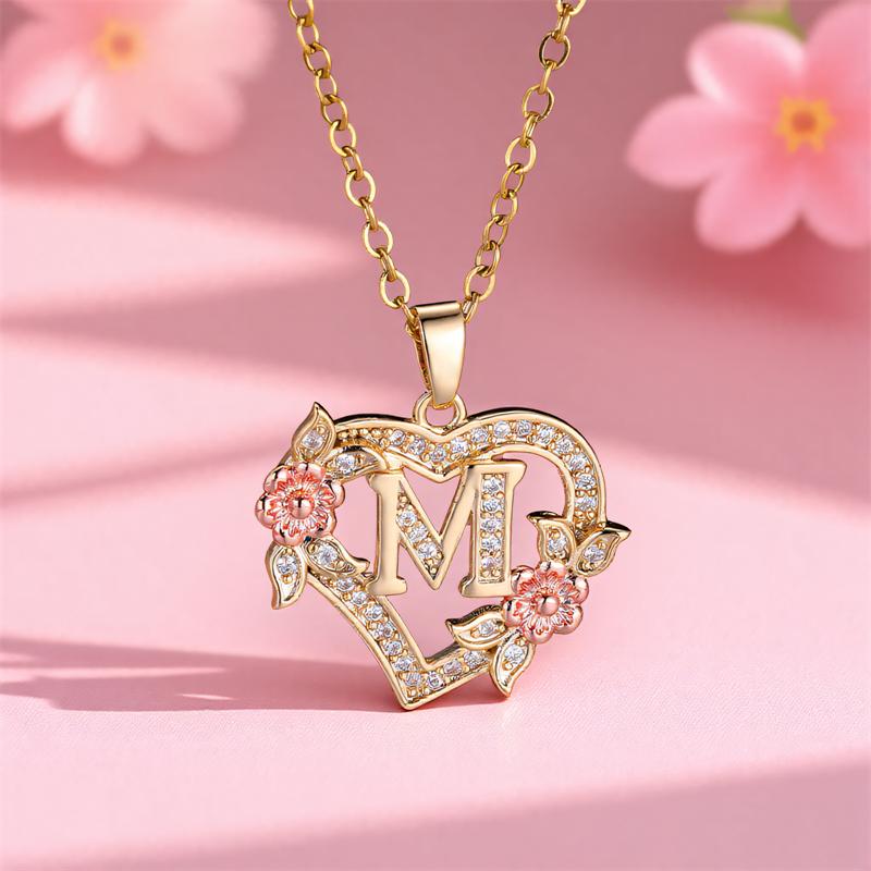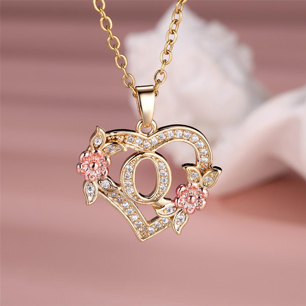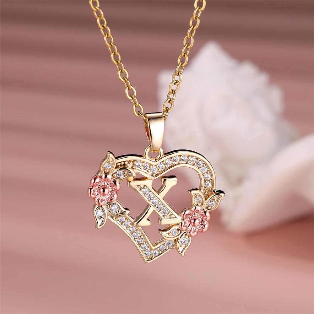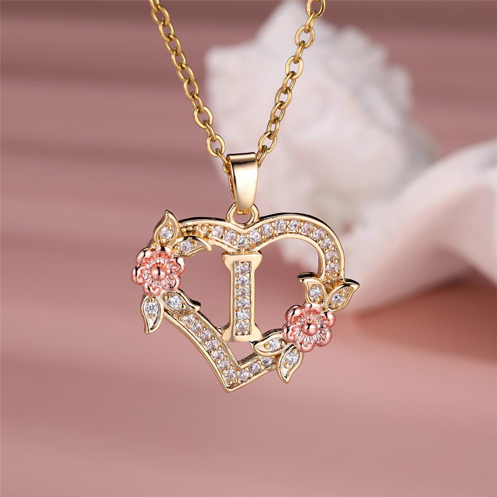 Trendy Love Heart Flower 26 Letters A-Z Pendant Necklace Vintage Gold Color Chains Necklaces For Women Wedding Jewelry Girl Gift