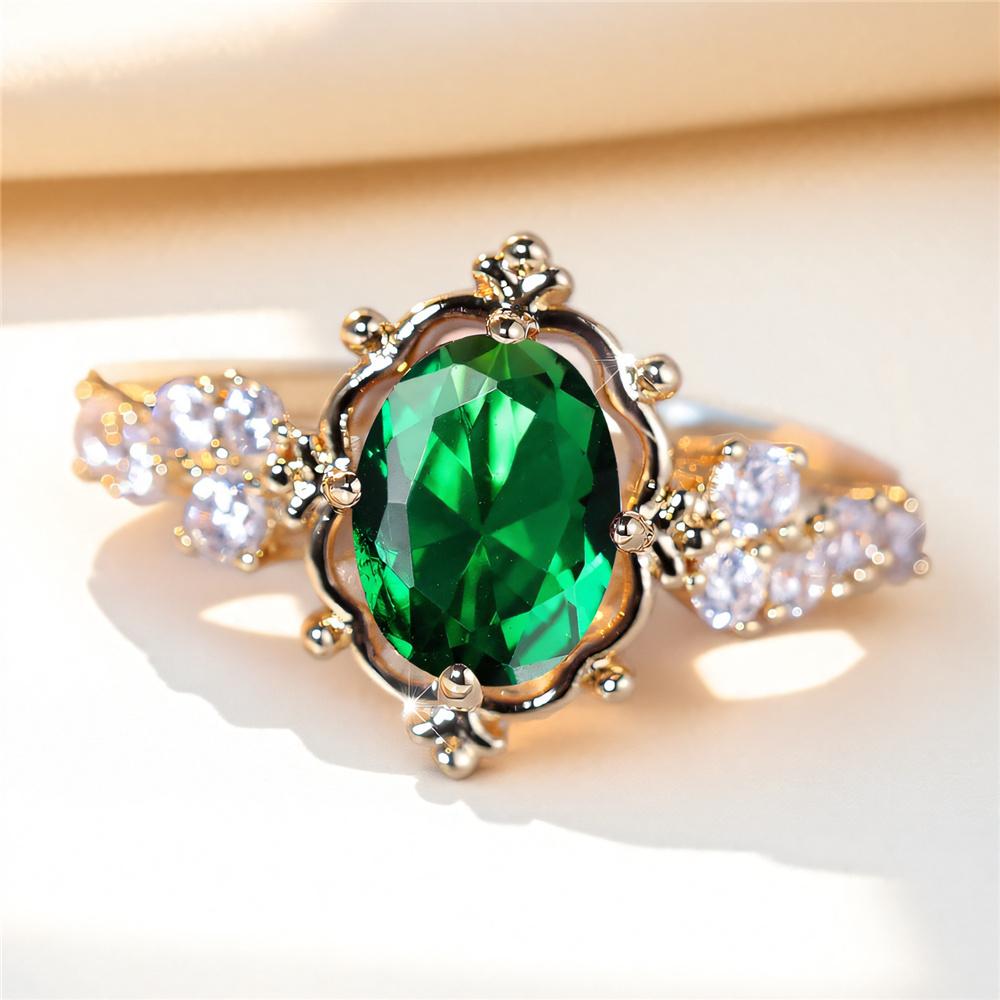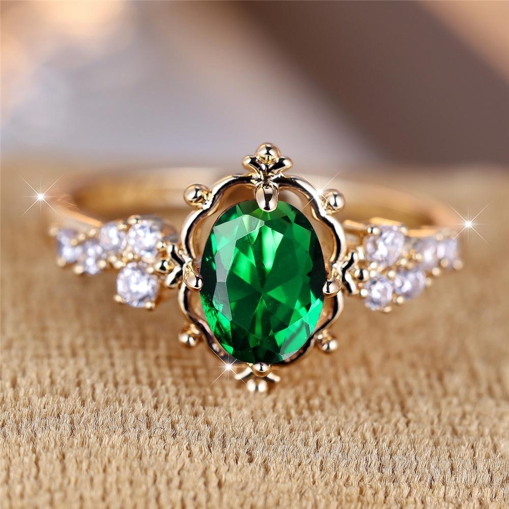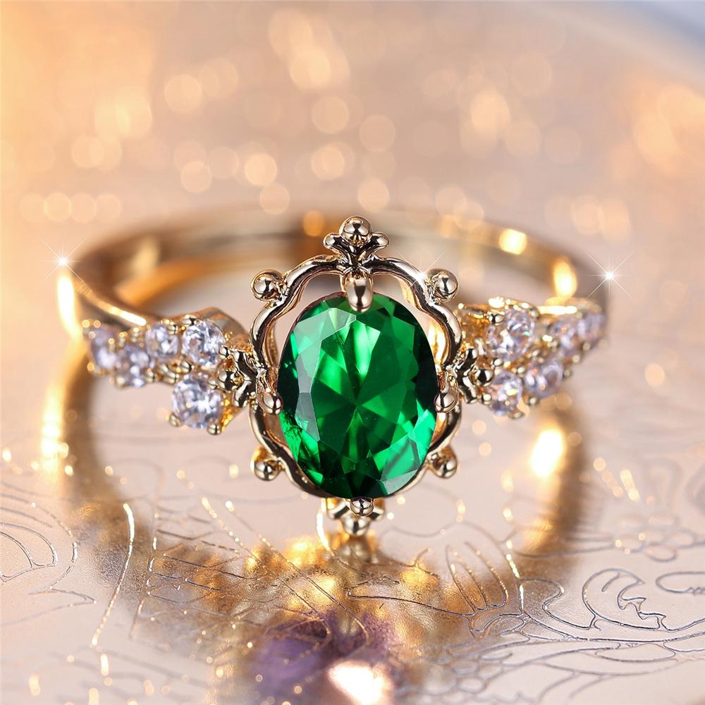 Милое женское кольцо с зеленым цирконом золотого цвета, свадебное украшение, кольца для помолвки для женщин