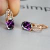 Кристально-фиолетовые овальные серьги-кольца цвета розового золота для женщин