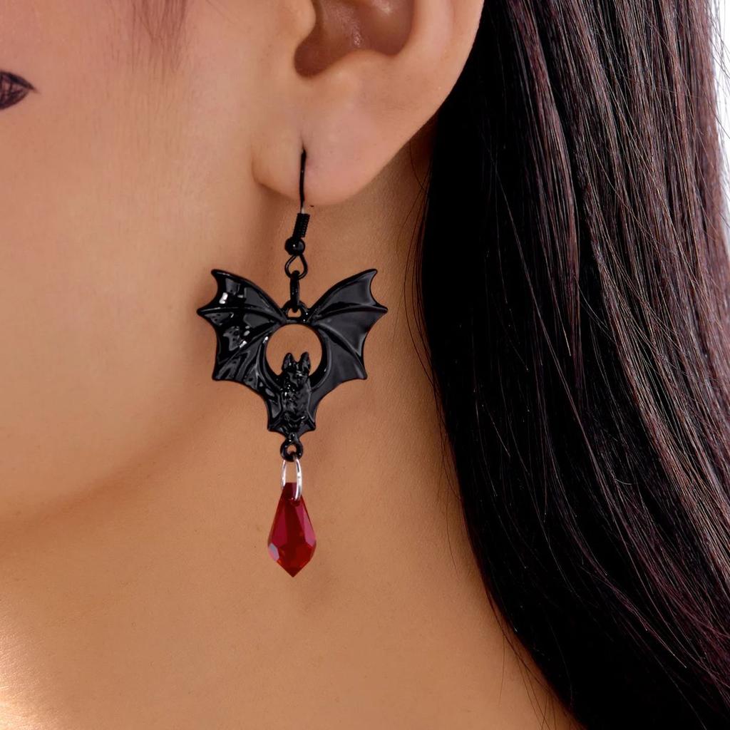 Classic Gothic Vampire Bat Earrings for Women Man Vintage Black Water Drops Crystal Bat Pendant Earrings Jewelry Accessories