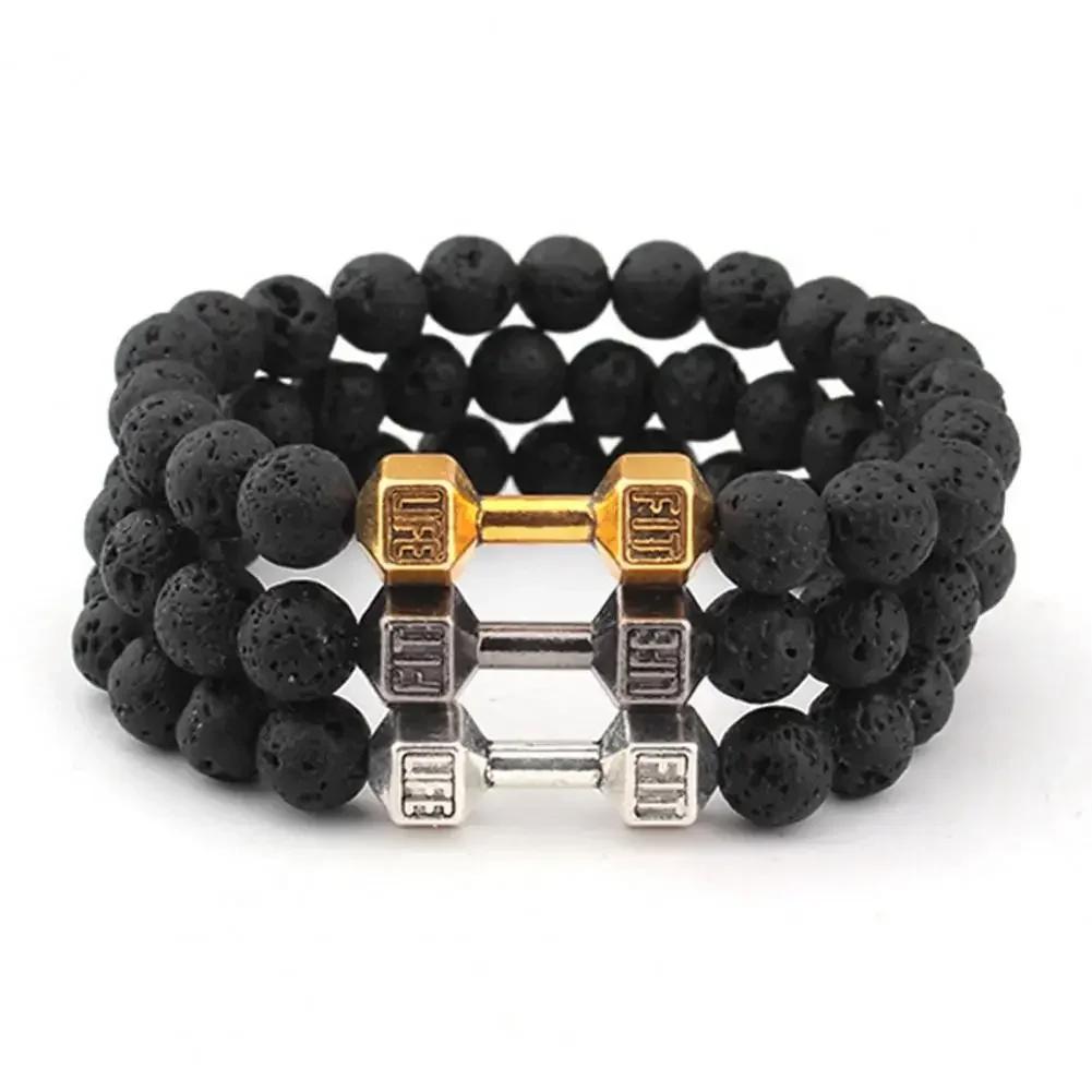 Мужской браслет Мужской браслет из бусин Натуральный лавовый камень Шарм в виде гантели Браслеты Энергия Фитнес Штанга Женские украшения