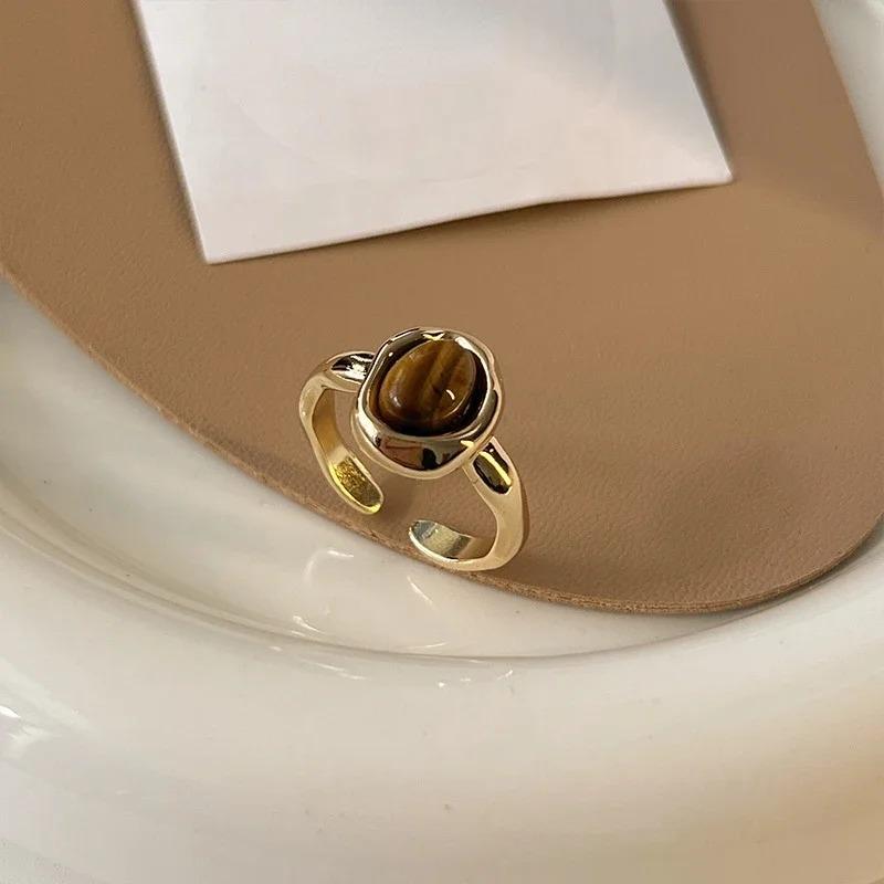 Нерегулярное круглое персонализированное винтажное коричневое кольцо-петля из камня тигровый глаз для женщин, кольцо на палец, дизайнерское, высококачественное ювелирное изделие, подарок