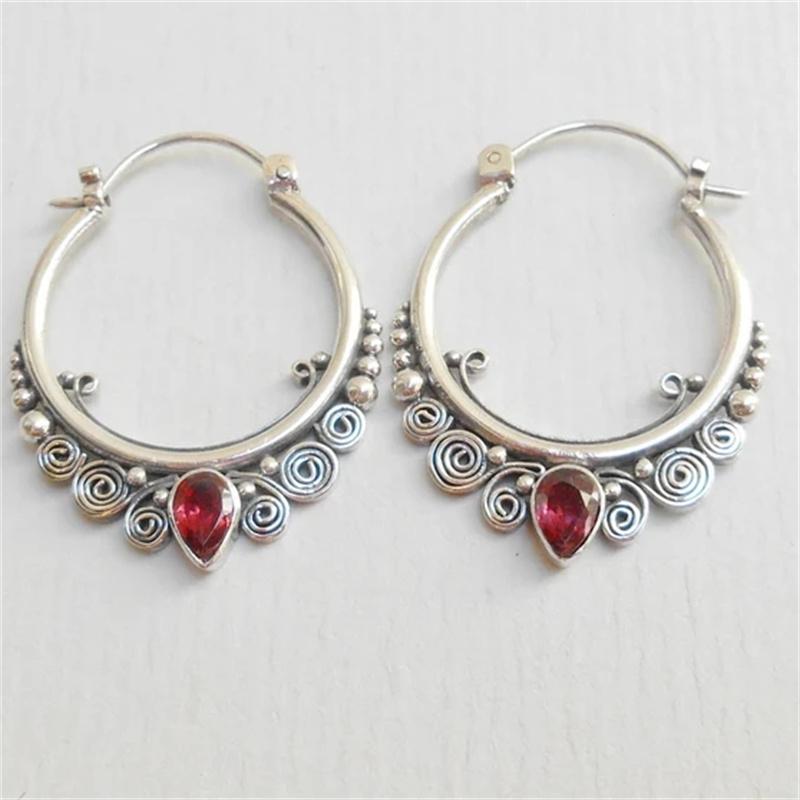Винтажные серьги серебристого цвета с красным цирконом в форме капли воды, изысканная металлическая резьба, серьги-спирали, аксессуары для женщин — купить товар онлайн с бесплатной доставкой по всему миру!