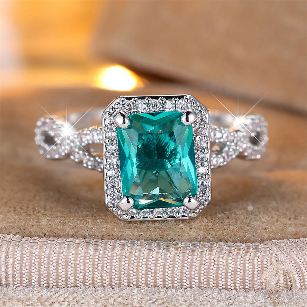 Квадратные зеленые хрустальные геометрические циркониевые кольца для женщин винтажные серебристого цвета обручальные кольца свадебные украшения подарок невесте на день рождения