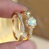 Комплекты колец с круглым белым огненным опалом для женщин, винтажные обручальные кольца золотого цвета, свадебные украшения, универсальные подарки для невесты.