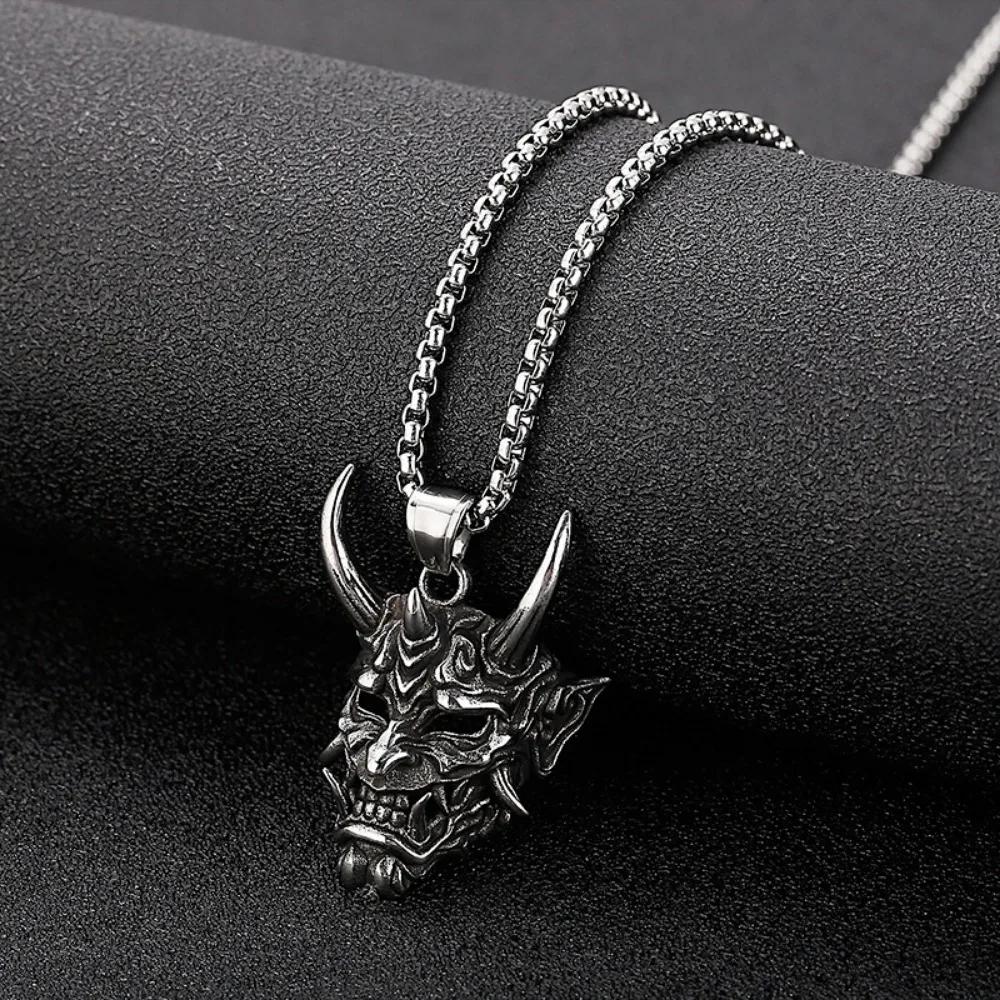 Винтажное панк-ожерелье с подвеской в виде маски демона и призрака самурая для мужчин и женщин, длинное цепное ожерелье в стиле хип-хоп и рок-вечеринки, подарочные аксессуары