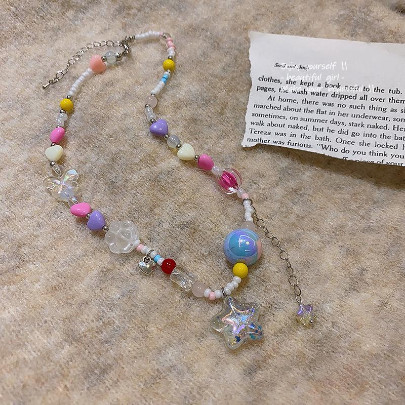 Многоцветное Y2K Богемия Конфетный цвет Милое ожерелье для женщин Подвеска-звезда Ожерелье-цепочка на ключицу из бусин Праздничные аксессуары