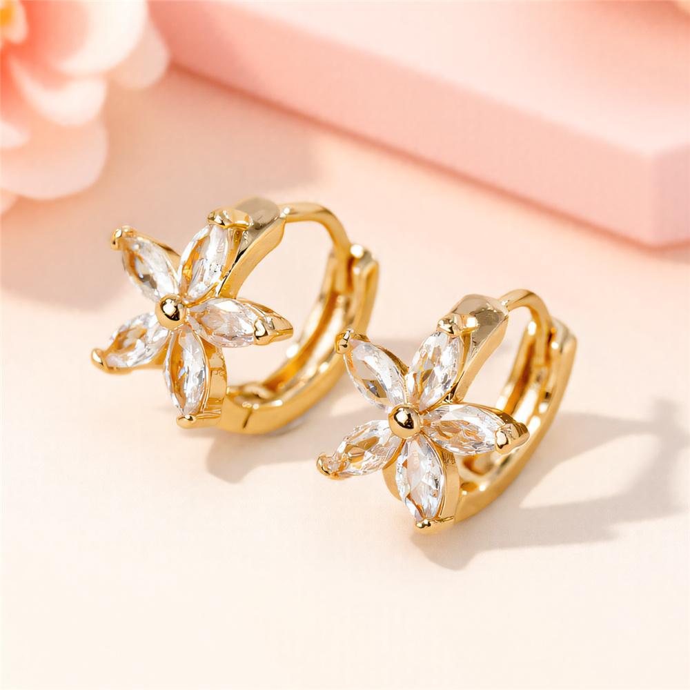 Charm White Zircon Stone Flower Hoop Earrings For Women Vintage Female Gold Color Wedding Jewelry