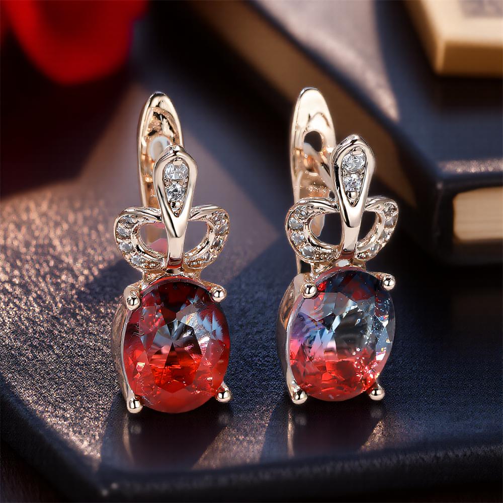 Овальные серьги-кольца с красным и синим кристаллом циркония для женщин, винтажные, золотистого цвета, серьги-пряжки для ушей, свадебные украшения для невесты, подарки для вечеринки