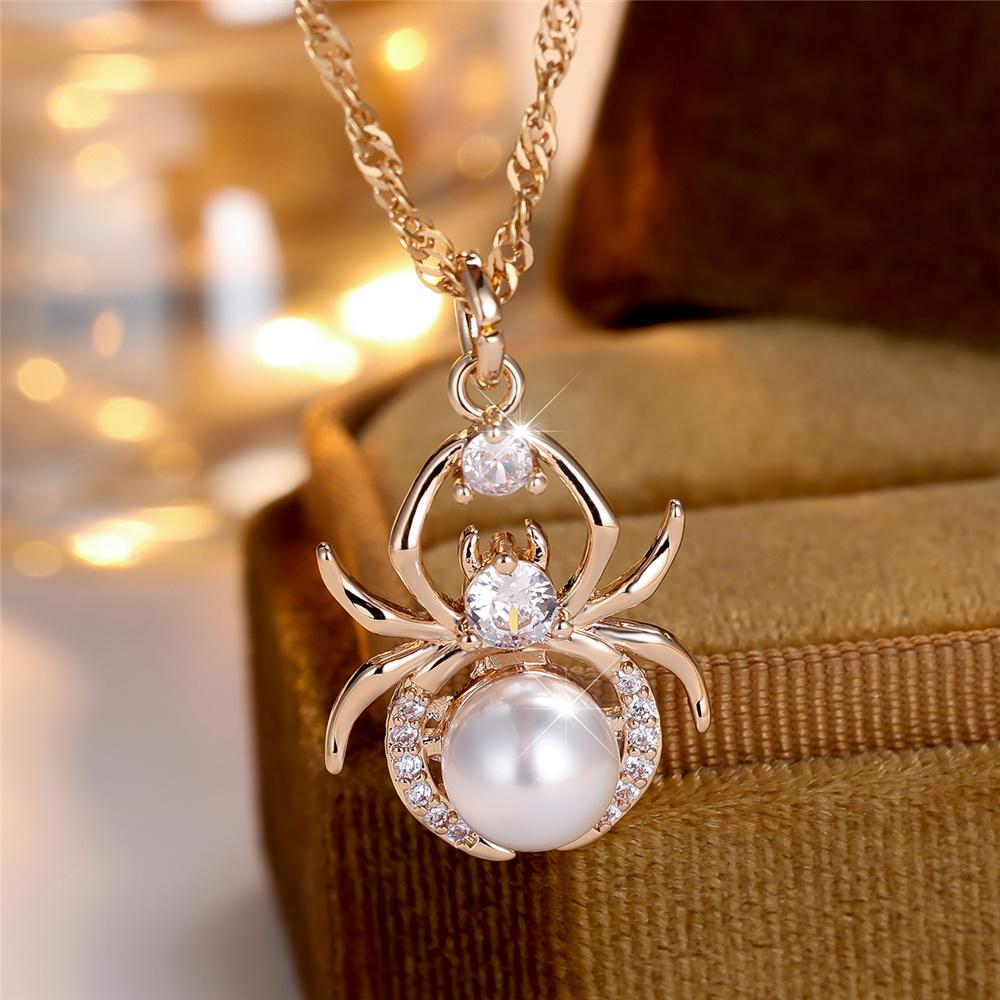 Женское ожерелье с милой подвеской в виде паука из белого циркона, винтажного золотого цвета, свадебная бижутерия для женщин