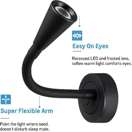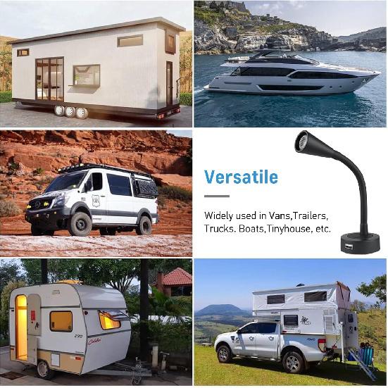 acegoo 12V LED Reading Light RV Dimmable Reading Lamp with USB Charger 12 Volt Flexible Goosneck Light for Boat Camper Van Trailer Interior Lighting,