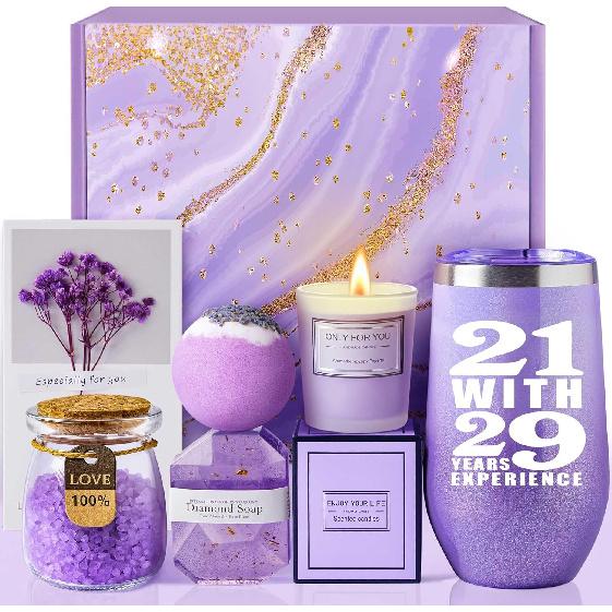 【Забавный и практичный термостакан на 50-летие】Набор подарочной корзины на 50-летие включает в себя высококачественный термостакан из нержавеющей стали объемом 16 унций, с забавной надписью «21 год с 29-летним опытом». Идеально подходит для сохранения напитков холодными до 24 часов или горячими в течение 12 часов, этот стакан для вина на 50-летие является одновременно практичным и игривым, что делает его выдающимся подарком на 50-летие, которым она будет пользоваться каждый день. Идеальный для кофе, чая, вина и многого другого, этот стакан отлично подойдет женщинам, отмечающим 50-летие.