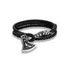 Мужской браслет из нержавеющей стали с топором викингов, кожаный амулет с волком, браслет ручной работы для мужчин и женщин, байкерский, для активного отдыха, ювелирное украшение, подарок