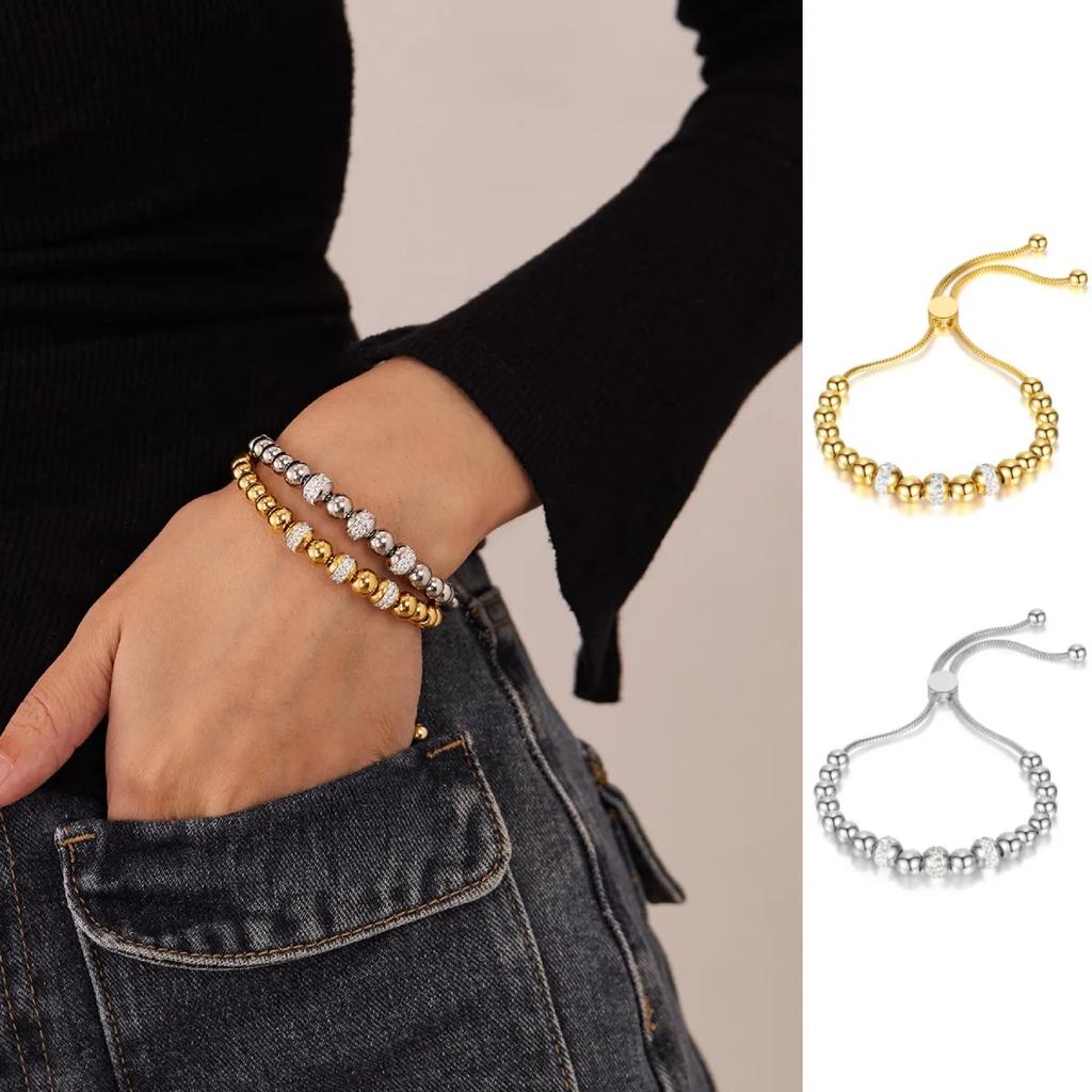 Роскошный браслет-сфера с регулируемой цепочкой - Ювелирные изделия из нержавеющей стали для женщин, Гипоаллергенный подарок, Золотистые браслеты-аксессуары