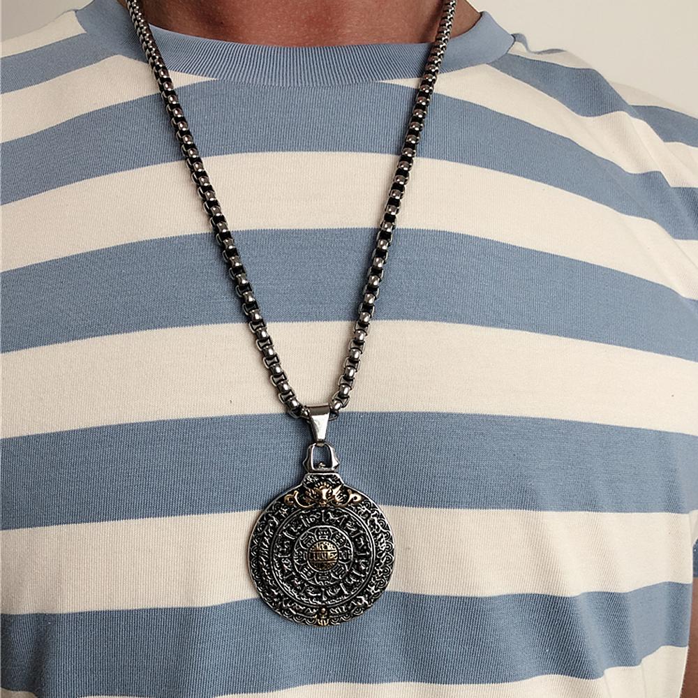 Ретро Амулет Подвеска Багуа Девяти Дворцов Нержавеющая Сталь Зодиак Мужское Ожерелье Панк Подвеска Цепочка Ювелирное Изделие Подарок