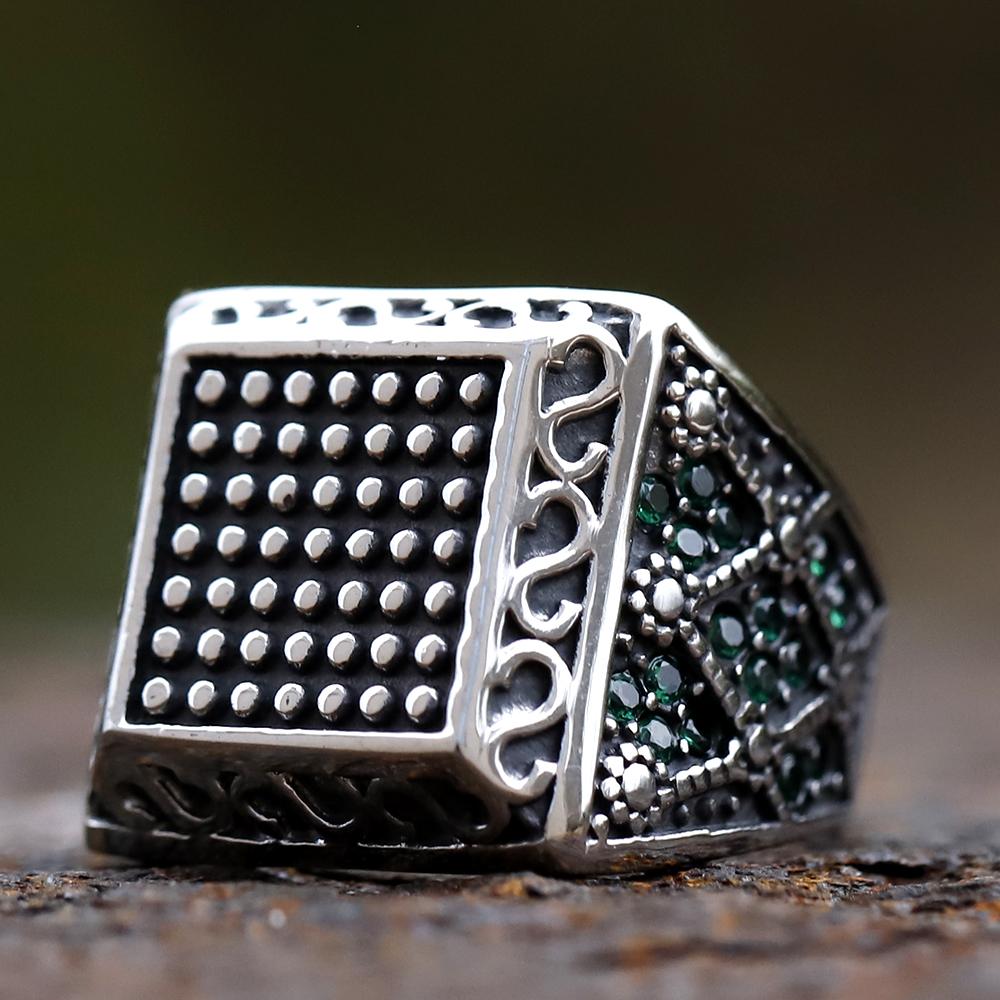 Квадратное кольцо из нержавеющей стали 316L с зеленым цирконом Ближний Восток Anels Danshen Темперамент Аксессуары Подарок для пары