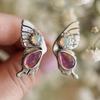 Винтажные серебристые кольца-цветы и бабочки для женщин, модные, круглые, инкрустированные красным камнем, регулируемые, кольца для вечеринок, ювелирные изделия
