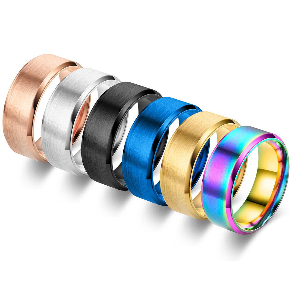 8MM Classic Stainless Steel Ring For Men Women 7 Color Double Inclined Plane Matte Wedding Band Couples Rings Jewelry