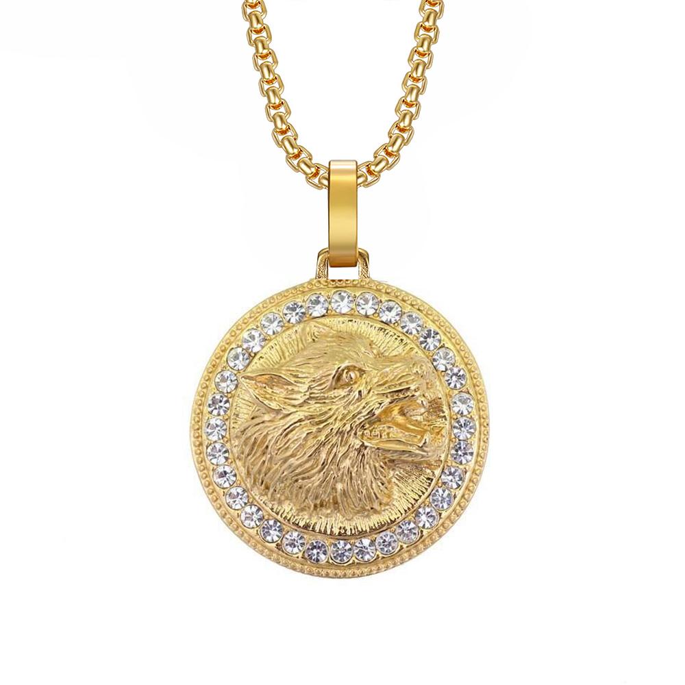 Панк Блестящий Подвеска Голова Волка Животное Мужской Золотой Цвет Нержавеющая Сталь CZ Круглая Цепочка Для Мужчин Ювелирный Подарок 2025