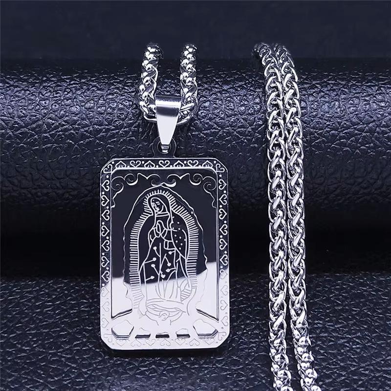 YQ Нержавеющая сталь Католицизм Подвеска Ожерелье Дева Мария Для мужчин Женщин Религиозная медаль Ювелирный аксессуар Подарки
