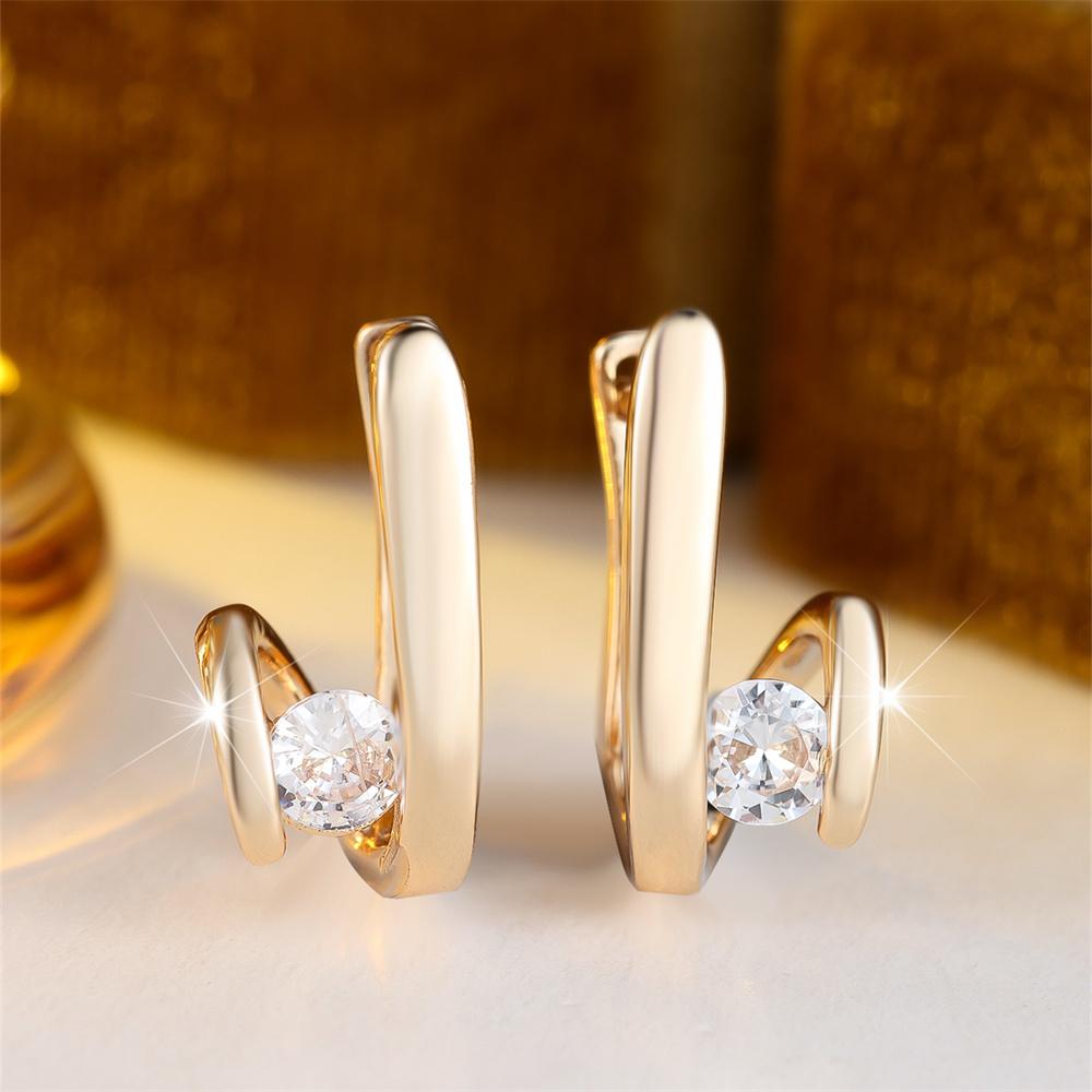 Белые цирконы Маленькие круглые камни Серьги-кольца для женщин Винтажный золотой цвет Маленькие застежки для ушей Свадебные украшения Подарки для помолвки