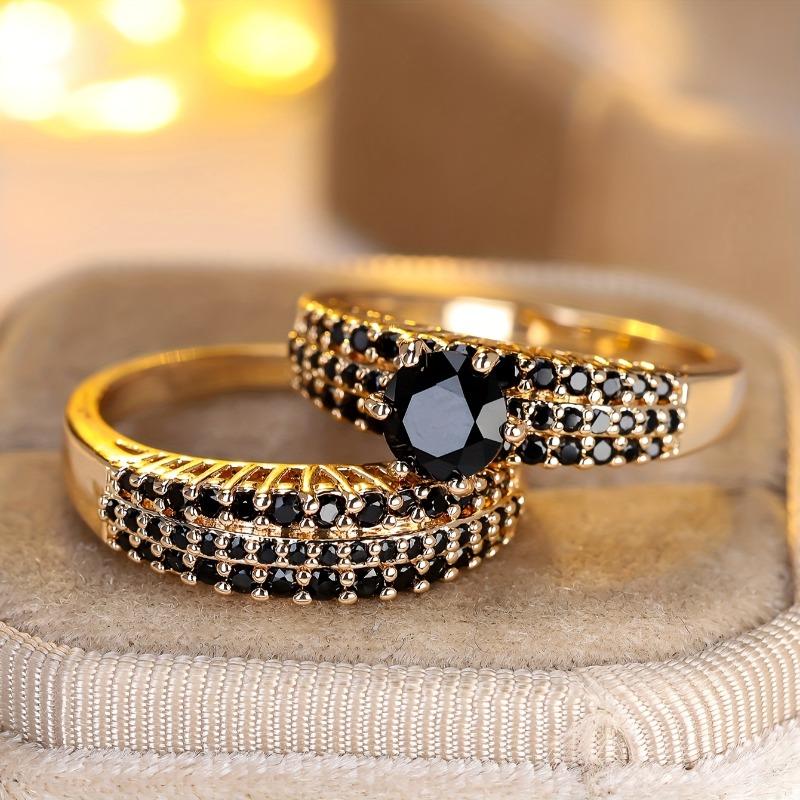 Комплект колец с черным синтетическим цирконием круглой огранки для женщин, обручальное кольцо, ювелирное украшение на День святого Валентина для вечеринок, для ежедневной носки, подарок