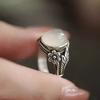 Кольцо в ретро этническом стиле с цветочным узором и ажурной работой, женское, серебряное, с натуральным камнем, простое, художественное, высококлассное, открытое кольцо с цветком, для повседневного сочетания