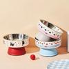 Stainless Steel Pet High Footed Bowl Cartoon Anti Slip Cat Bowl Large Capacity Anti Vomiting Elevated Pet Feeder Bowl