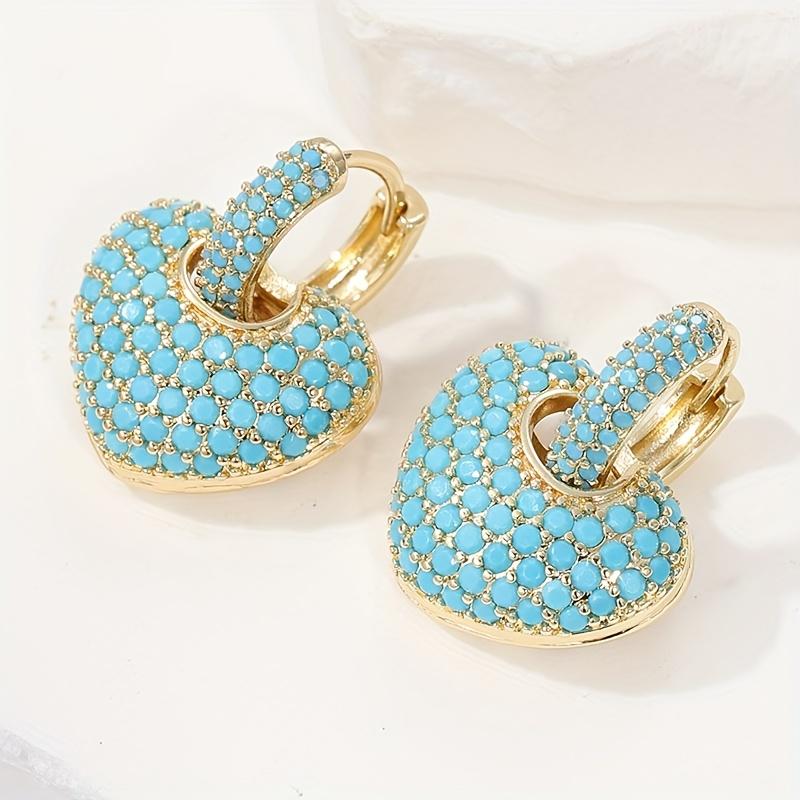 Роскошные серьги-кольца в форме сердца из синтетической бирюзы для женщин для свадеб, помолвок и повседневной носки. Подарок